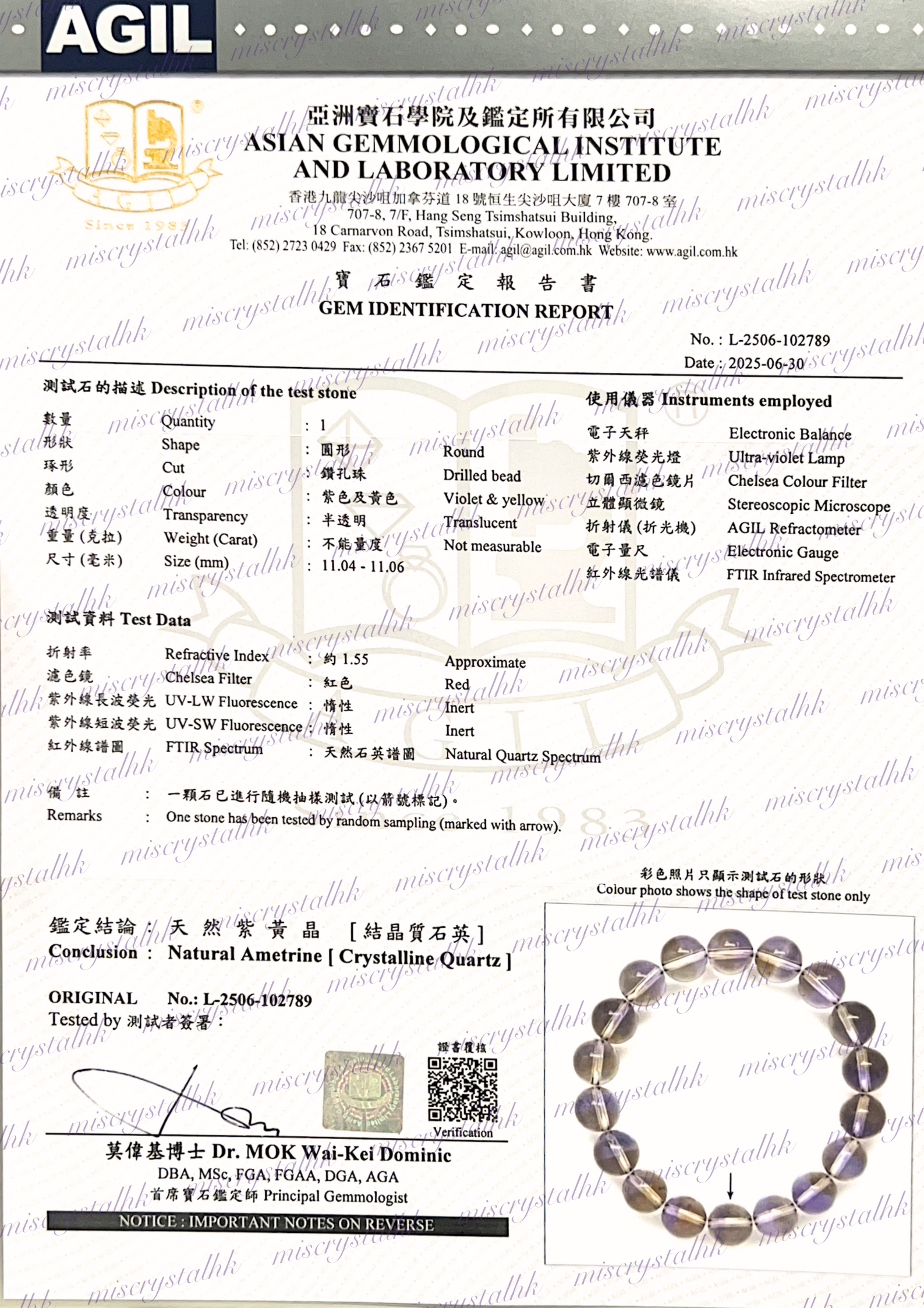 寶石鑑定報告書不包括在其水晶的售價中