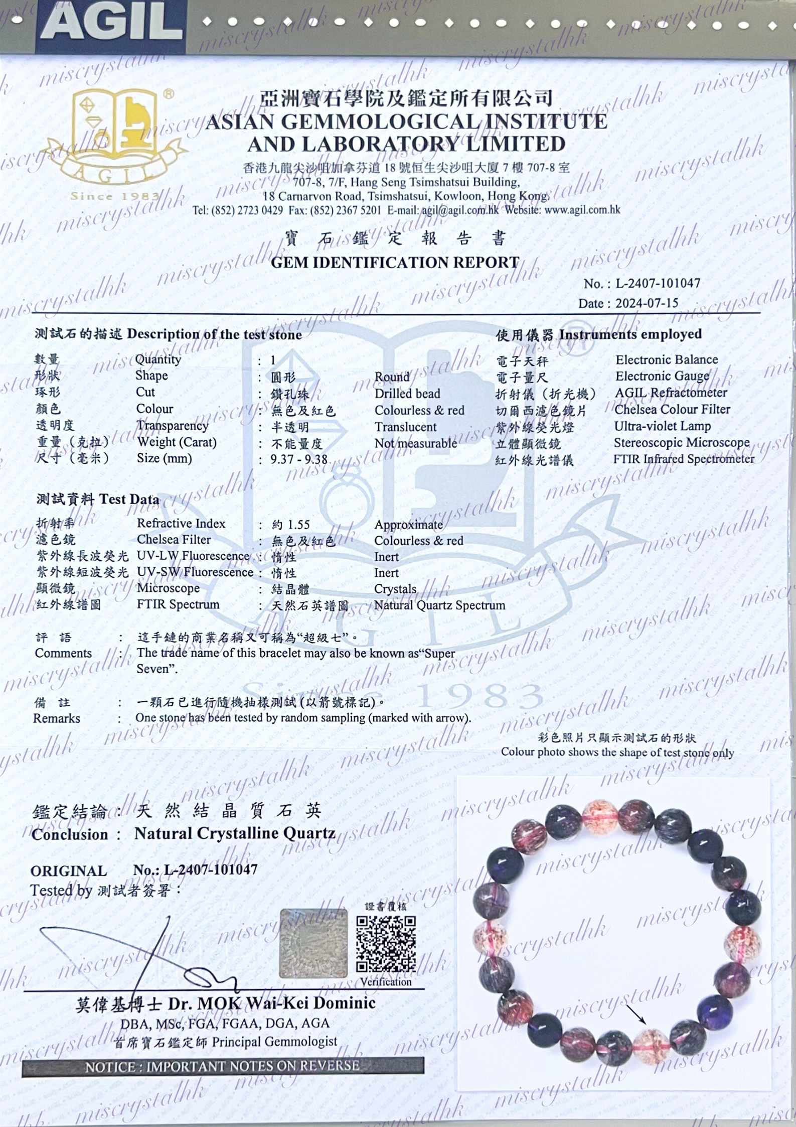 寶石鑑定報告書不包括在其水晶的售價中
